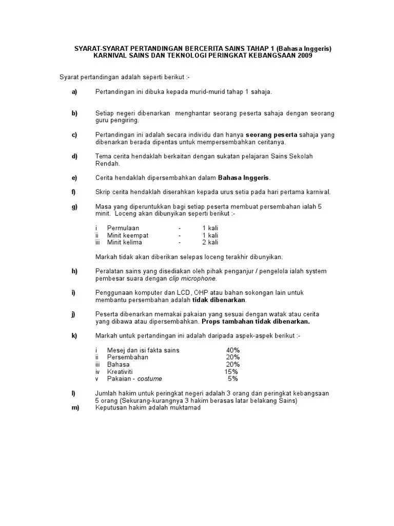 Syarat syarat pertandingan bercerita sains tahap 1.